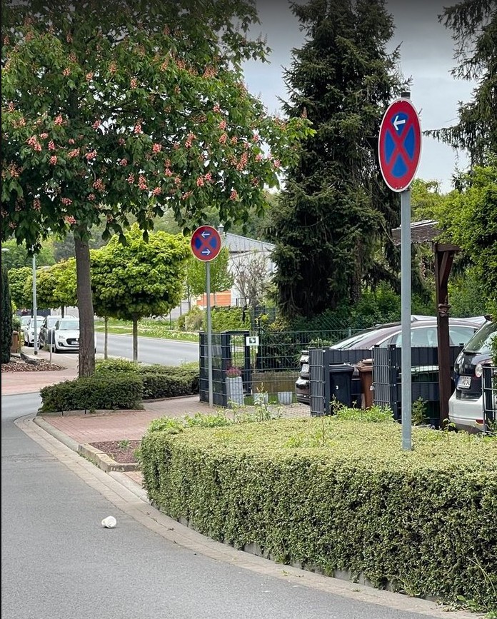 Entlang dieser Straße ist das Halten absolut verboten, auch wenn das Schild ganz hinten steht